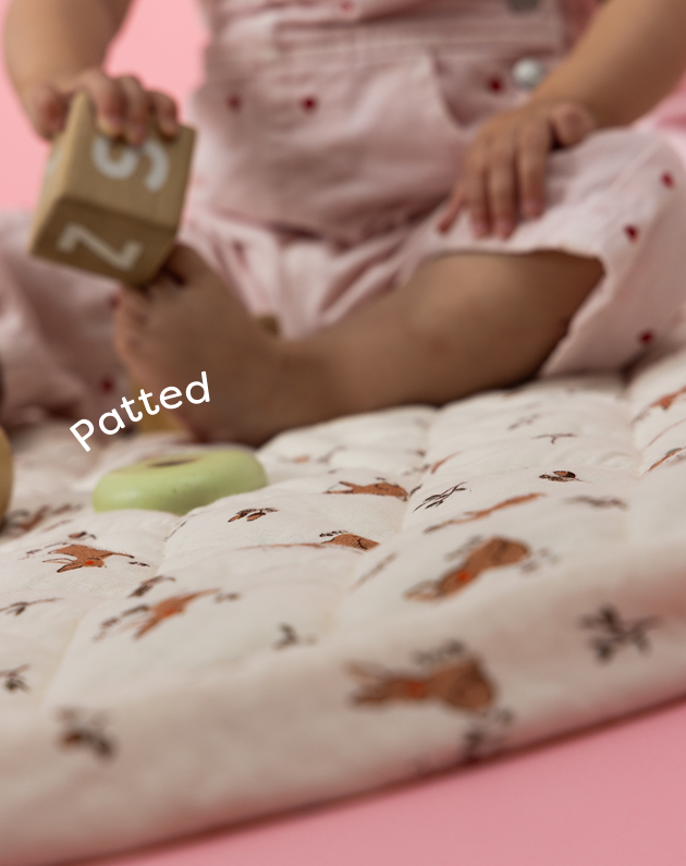 Made from GOTS-certified organic cotton and softly padded with GRS-certified recycled PET, it’s gentle on your baby’s skin and kind to the planet. With a spacious 120 cm diameter, it provides a safe and cozy play area. The 2 cm thick padding adds extra softness and support, perfect for home use or on the go.